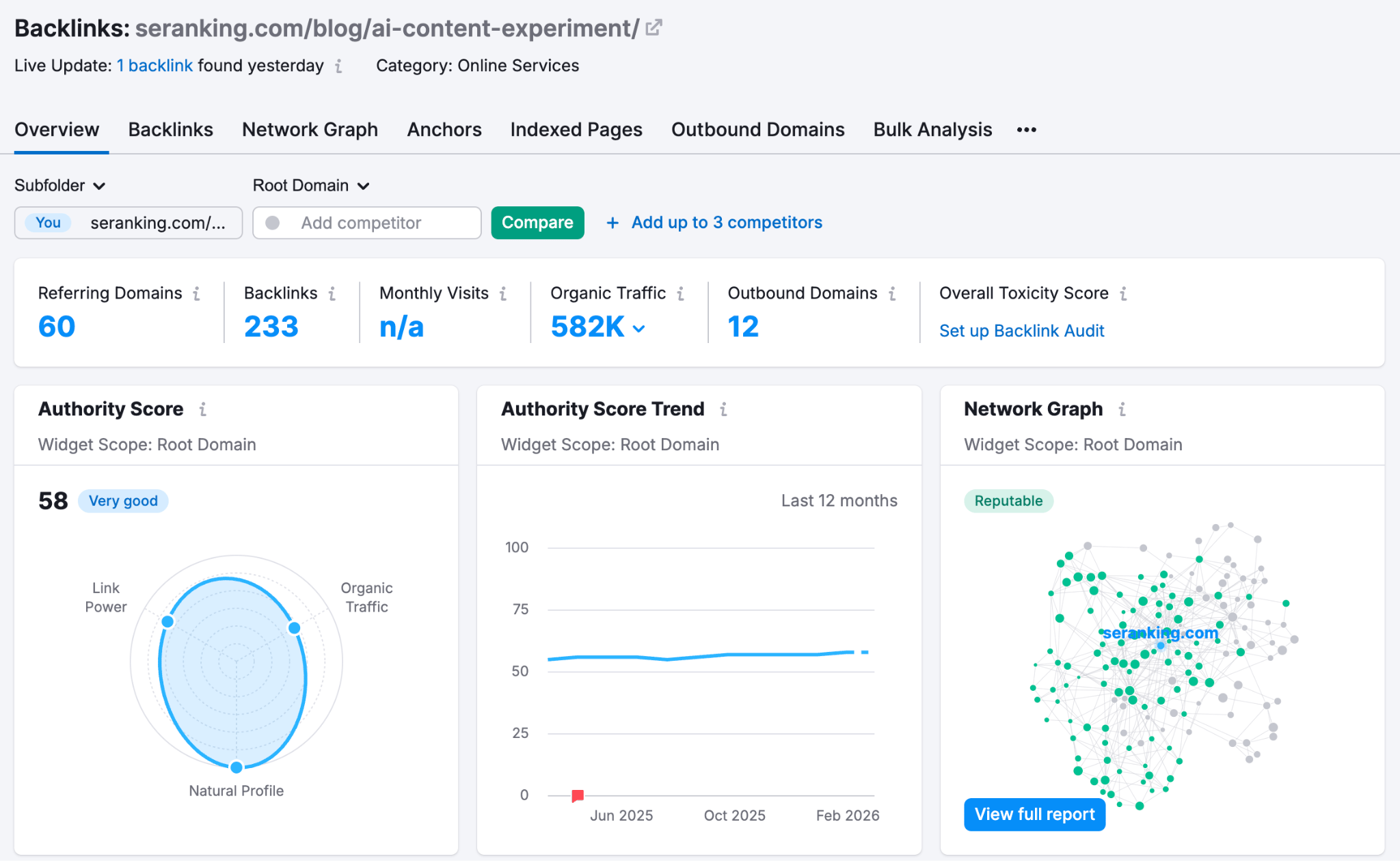 And this matters for SEO specifically because original research attracts backlinks. When you publish proprietary data, other blogs, journalists, and industry publications cite it. The SE Ranking AI content experiment, for instance, has garnered 233 backlinks from sites like Search Engine Land, Rank Tracker, and Foundation Marketing.